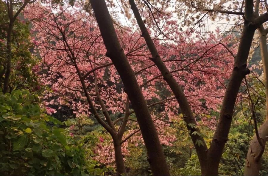 游戲結(jié)束之后,沐浴在暖冬陽光下的青年一行向山上出發(fā),一路觀賞著龍頭山半山腰絢麗的風(fēng)光。