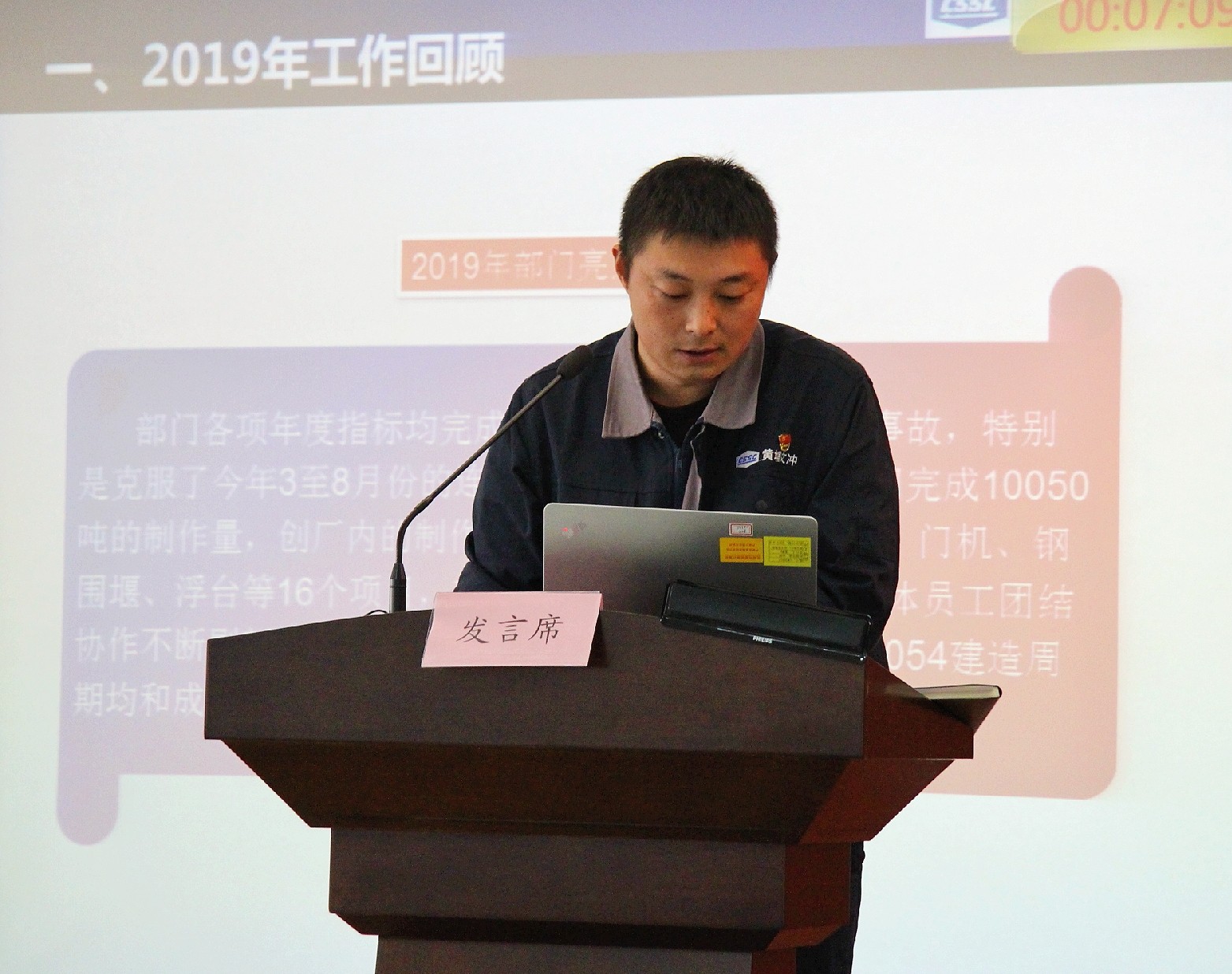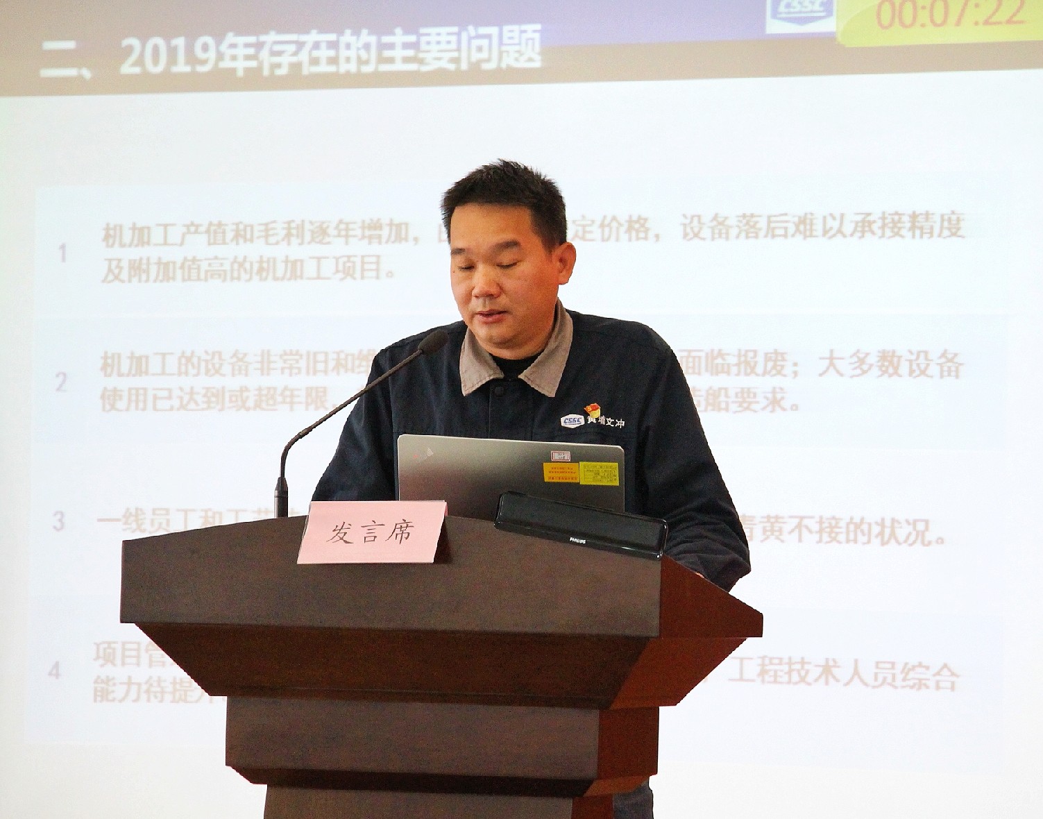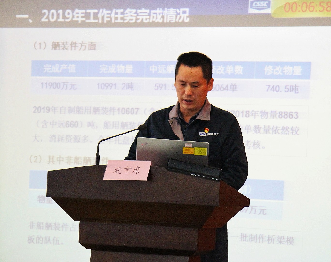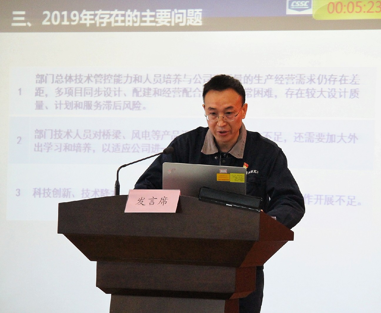 經(jīng)營部、技術開發(fā)部、配套部、風電工程部、舾裝工程部、海洋工程部、機加工部7個部門在會上就貫徹落實公司會議精神作了發(fā)言。