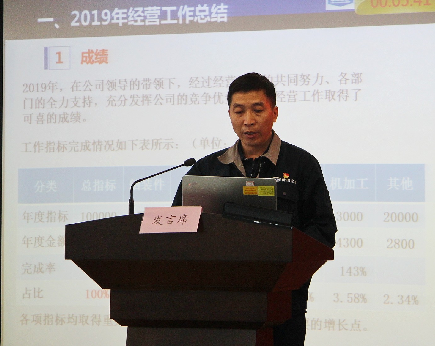 公司黨總支書記翁耿賢作了題為《抓住機遇,大膽開拓,推進公司健康發(fā)展》的主題發(fā)言。翁書記指出,2019年公司取得豐碩成果,產(chǎn)值、利潤、經(jīng)營承接均創(chuàng)歷史新高,這充分展示了公司全體干部員工努力拼搏的精神和干勁,也充分體現(xiàn)了公司黨總支“不忘初心,牢記使命”主題教育取得豐碩成果。為落實好總經(jīng)理2020年的工作部署,推進公司全面升級,翁書記對新一年工作和發(fā)展提出三點意見:一是抓住機遇謀發(fā)展,充分用好集團公司的政策和平臺,把握海上風電市場井噴期和粵港澳大灣區(qū)建設的有利時機,推動公司重型鋼結構制造產(chǎn)業(yè)轉型升級。二是大膽開拓創(chuàng)新生產(chǎn)組織方式、產(chǎn)品開發(fā)、管理模式、激勵機制,實現(xiàn)公司破局發(fā)展。三是確保公司健康發(fā)展,堅持黨建引領,以制度為準繩,把依法治企落到實處,同時繼續(xù)堅定不移地以成本為抓手做好各項管理工作,抓好黨風廉政建設,營造風清氣正的發(fā)展環(huán)境。