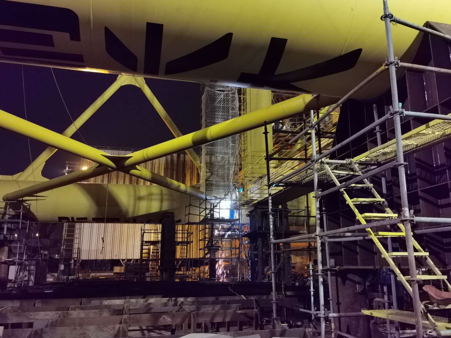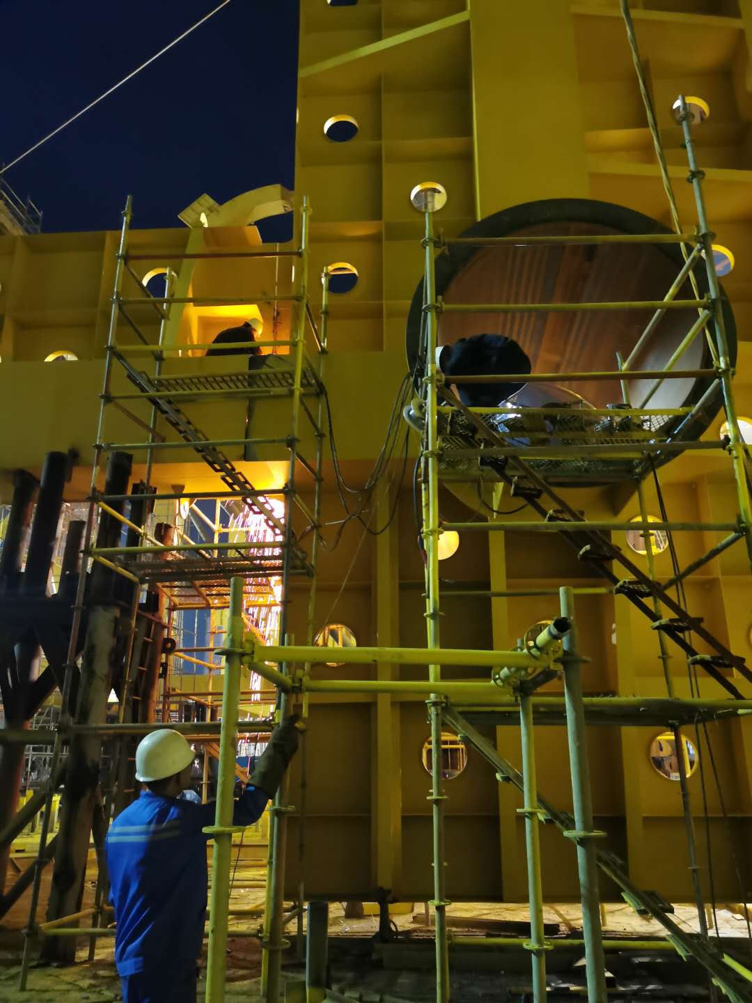 特別是各施工隊的帶班們。由于主架體吊裝后有25米之高,高空及夜間作業(yè)時間較多,為了保障生產安全和進度,他們每天日夜堅守,分段不松車,他們就不離開現(xiàn)場,想方設法為下面的工人解決施工困難,減少重復返工。