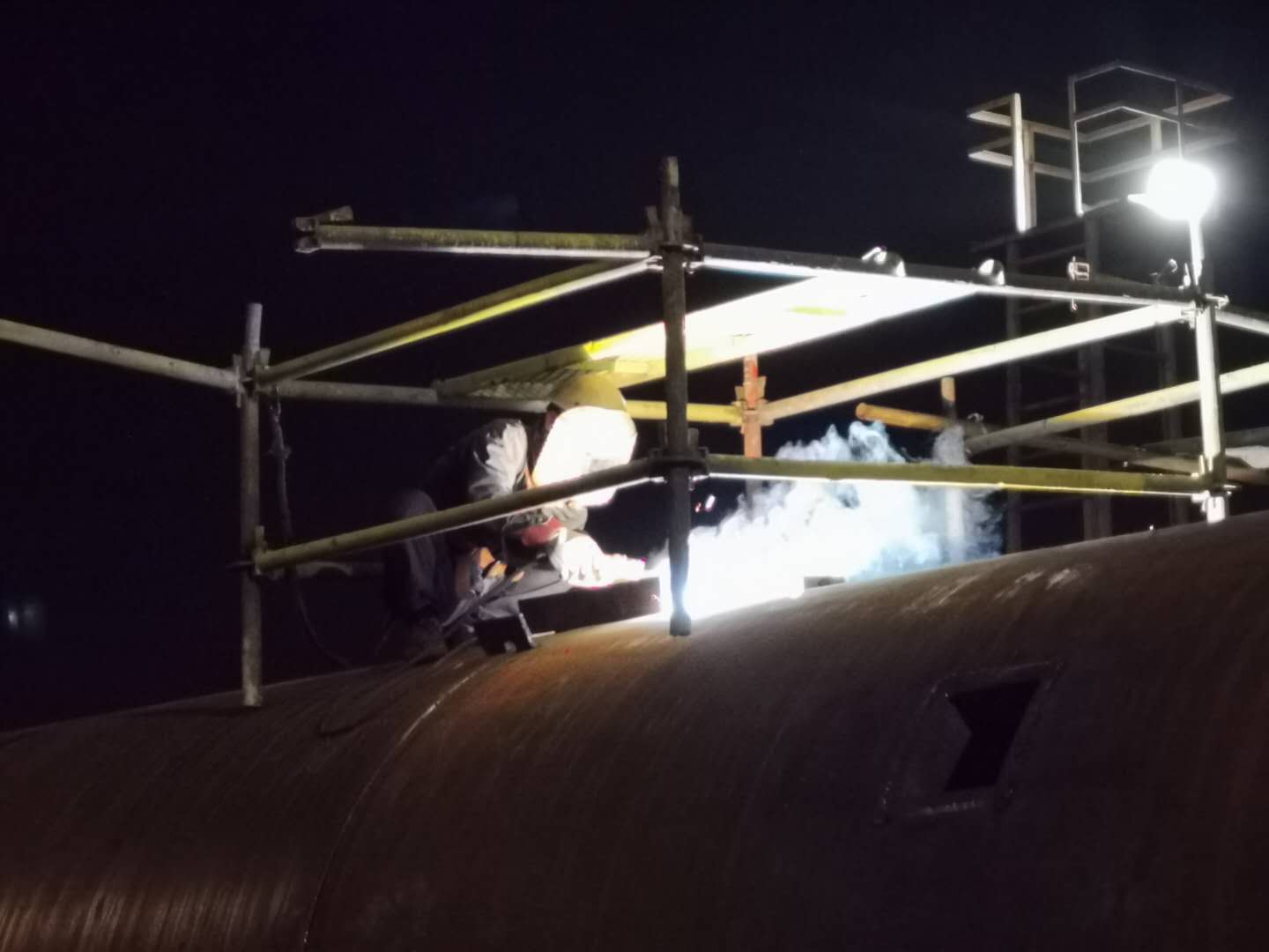 項目團隊每天召開項目現(xiàn)場碰頭會,點對點,抓落實,分工明確,責任到人,做到日事日畢。在項目節(jié)點緊張的時期,大家主動放棄節(jié)假日休息,每天通宵輪流作業(yè)。一線工班和施工隊人員更是不論天氣好壞,不論白天黑夜,持續(xù)做好吊裝分段,合攏口裝配、焊接,起重指揮,搭架配合,為項目開展不斷奮戰(zhàn)。