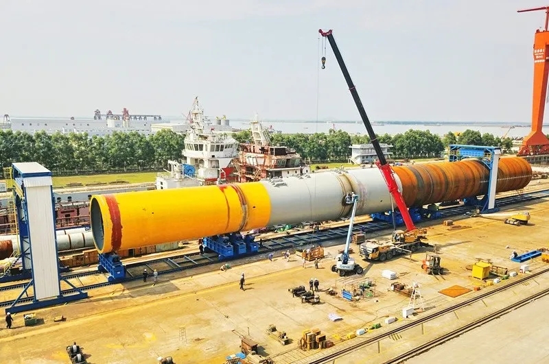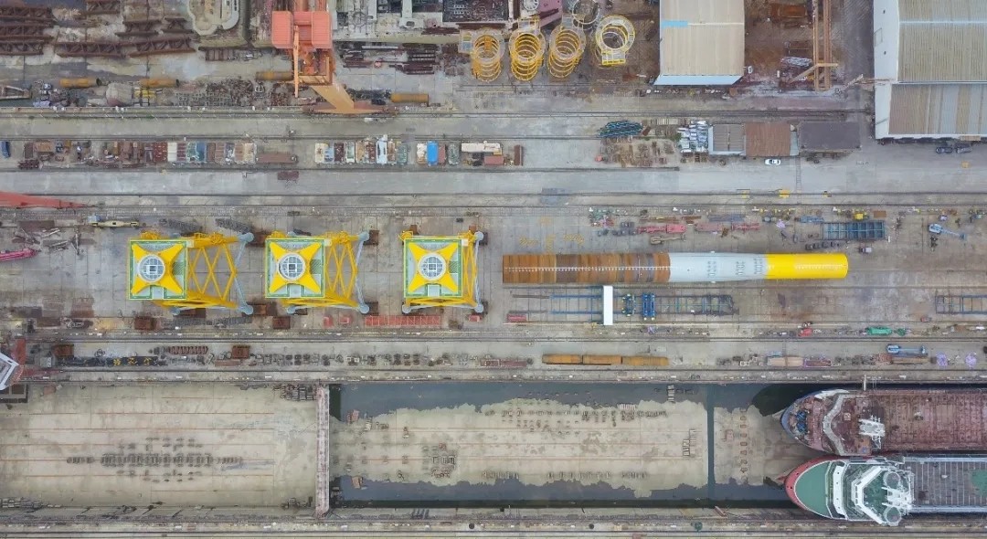 公司的生產(chǎn)場(chǎng)地面積超過70萬平方米,擁有海上風(fēng)電導(dǎo)管架、基礎(chǔ)鋼管樁、大直徑單樁和穩(wěn)樁平臺(tái)等產(chǎn)品生產(chǎn)線: