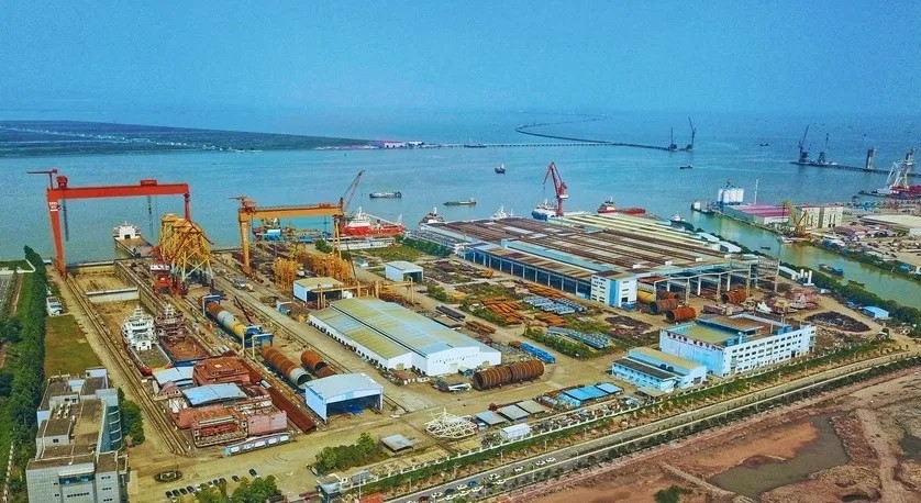 導(dǎo)管架總裝工位6個(gè),年產(chǎn)量達(dá)40套以上;