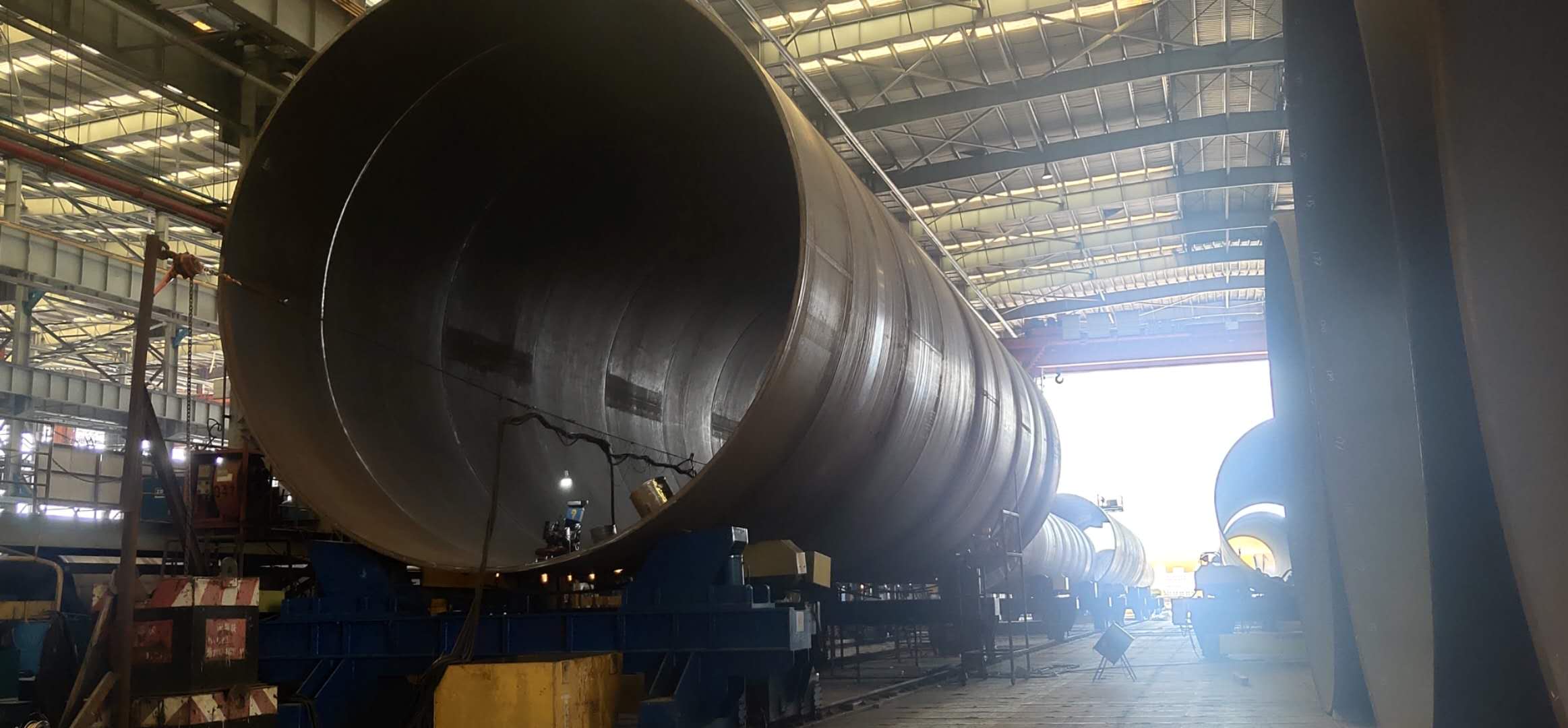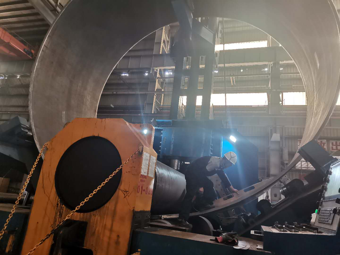 在項(xiàng)目過(guò)程中,中山基地充分發(fā)揮特種設(shè)備的極限產(chǎn)能,下料拼板日產(chǎn)24張,關(guān)鍵設(shè)備卷板機(jī)進(jìn)行單樁滾圓及縱縫作業(yè)日產(chǎn)16圓。同時(shí),公司各部門通力合作,首套單樁S29的出圖工作控制在10天內(nèi),材料訂購(gòu)30天后鋼板即到廠,9天內(nèi)完成總組合攏,從下料到整樁完成僅歷時(shí)37天,創(chuàng)下了單樁項(xiàng)目各環(huán)節(jié)用時(shí)最短的紀(jì)錄。目前,中山基地已經(jīng)可以實(shí)現(xiàn)月產(chǎn)單樁7-8套。