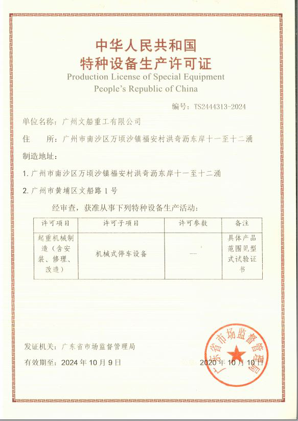 2020年10月9日,經(jīng)廣東省市場監(jiān)督管理局審批發(fā)證,公司成功獲取機(jī)械式停車設(shè)備制造(含安裝、修理、改造)資質(zhì)證書;2020年10月15日,經(jīng)歐盟認(rèn)證機(jī)構(gòu)審批,公司成功獲取EN1090、ISO3834體系認(rèn)證證書。