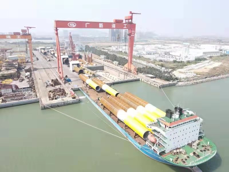 華南地區(qū)首家企業(yè)制造的首批海外風(fēng)電單樁順利發(fā)運(yùn)