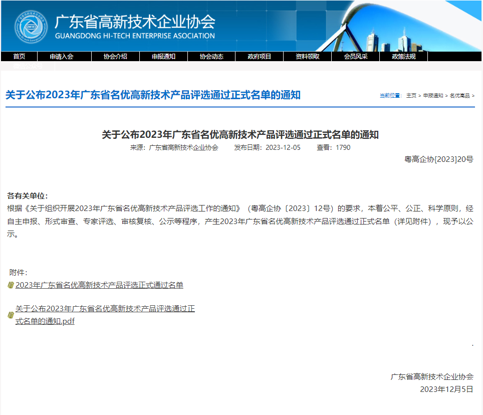 權(quán)威認(rèn)定 | 公司兩項(xiàng)產(chǎn)品獲評“2023年廣東省名優(yōu)高新技術(shù)產(chǎn)品”